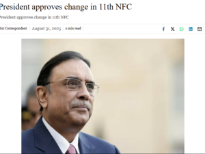 The National Finance Commission (NFC) holds a central place in Pakistan’s economic governance, serving as the constitutional mechanism that decides how financial resources are shared between the federation and its provinces. The distribution formula not only impacts provincial budgets but also shapes the trajectory of development, governance, and political stability. Recently, President Asif Ali Zardari approved a key change in the composition of the 11th NFC, a decision that has far-reaching implications for intergovernmental financial relations.